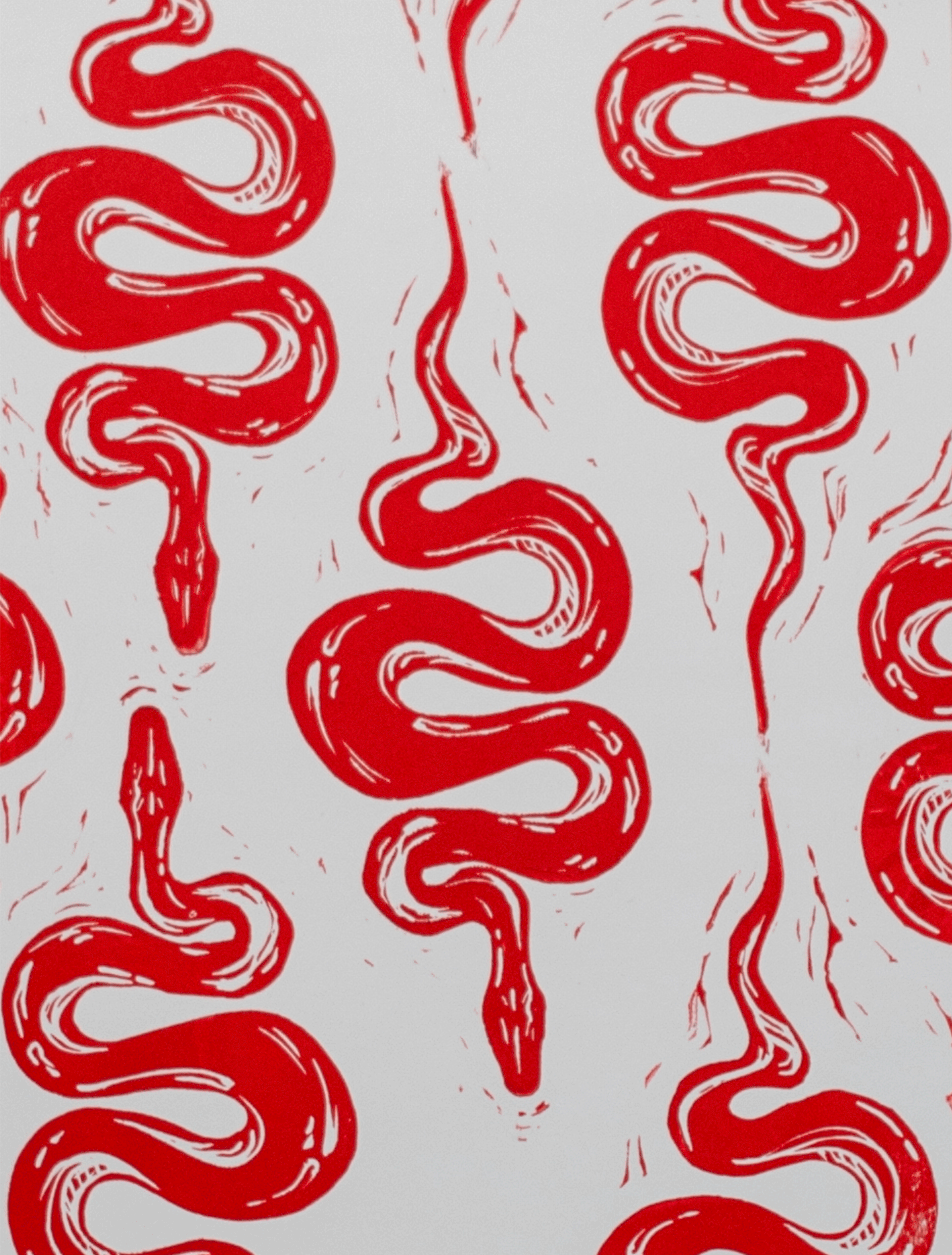Snakes lino print pattern on paper (21 cm x 29,7 cm). 2020.